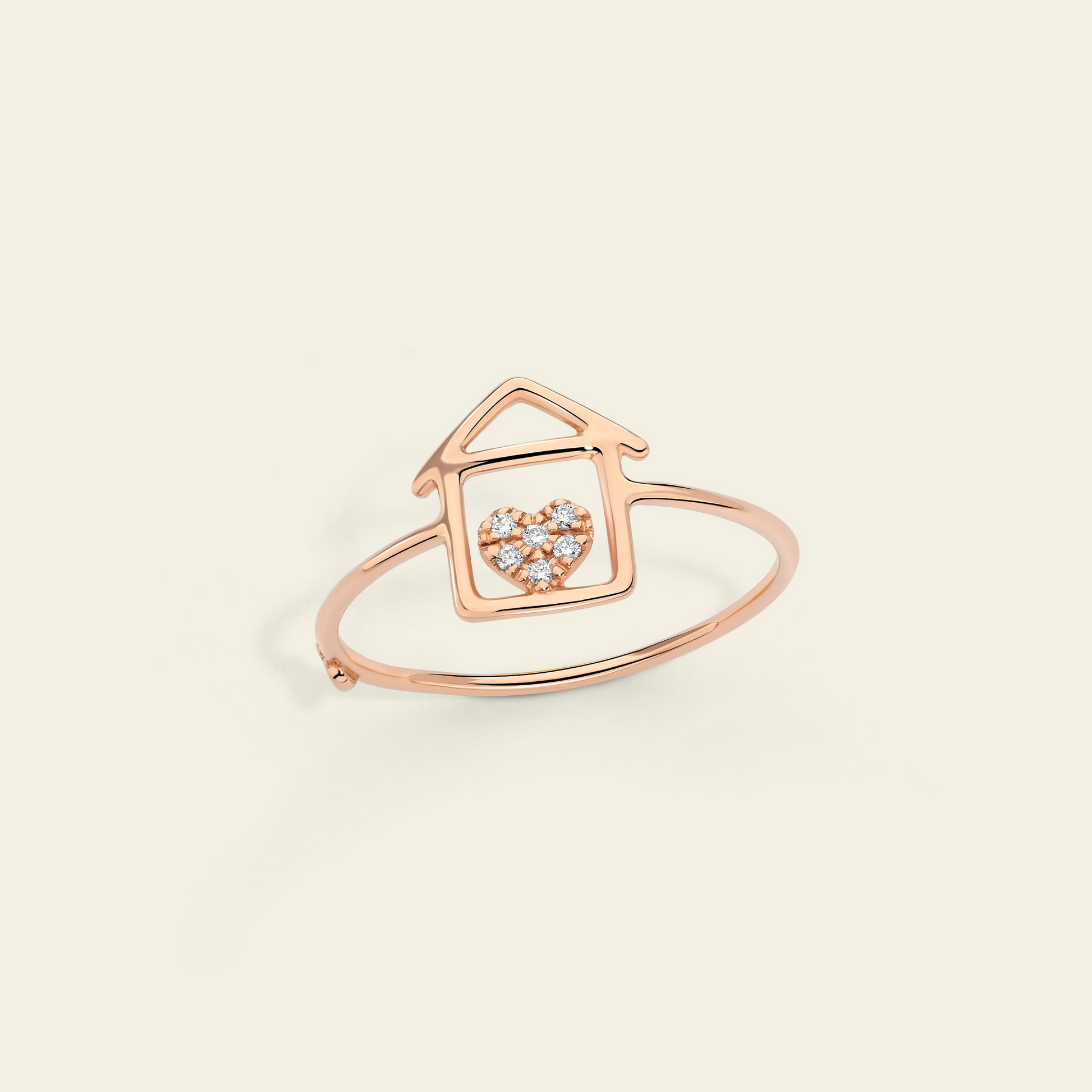 Una casa che custodisce al suo interno un cuore impreziosito da diamanti bianchi. E' questo il fil rouge della Collezione Il Cuore fa Casa. L'anello con al centro la casa in filo d'oro rosa 18 kt celebra in modo ricercato il calore e la certezza che solo una casa e una famiglia possono dare. Indossalo da solo o abbinato ad altri gioielli della collezione Il Cuore fa Casa. Materiale: Oro rosa 18k Pietre: n° 6 diamanti bianchi ct. 0,03